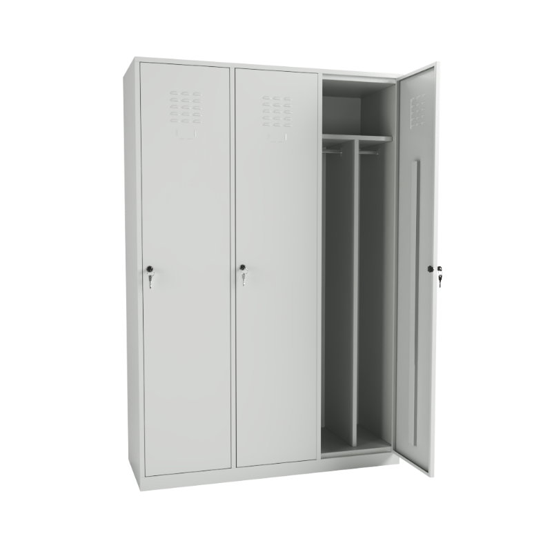 3 cușete, fiecare dotată cu 1 poliță la partea superioară, 1 bară umeraș, 1 cârlig și un panou metalic vertical, care separă cușeta în 2 părți – pentru haine de lucru și haine personale.